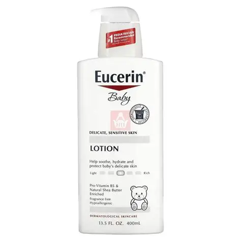 Eucerin Baby Lotion 400ml – Is a gentle, fragrance free moisturizer specially formulated for a baby’s delicate skin. Enriched with pro-vitamin B5 and natural shea butter ,it helps soothe, protect and deeply hydrate while supporting healthy skin development. Its lightwei9ght,non-greasy texture absorbs quickly ,making it suitable for daily use on sensitive skin, including babies prone to dryness or irritation