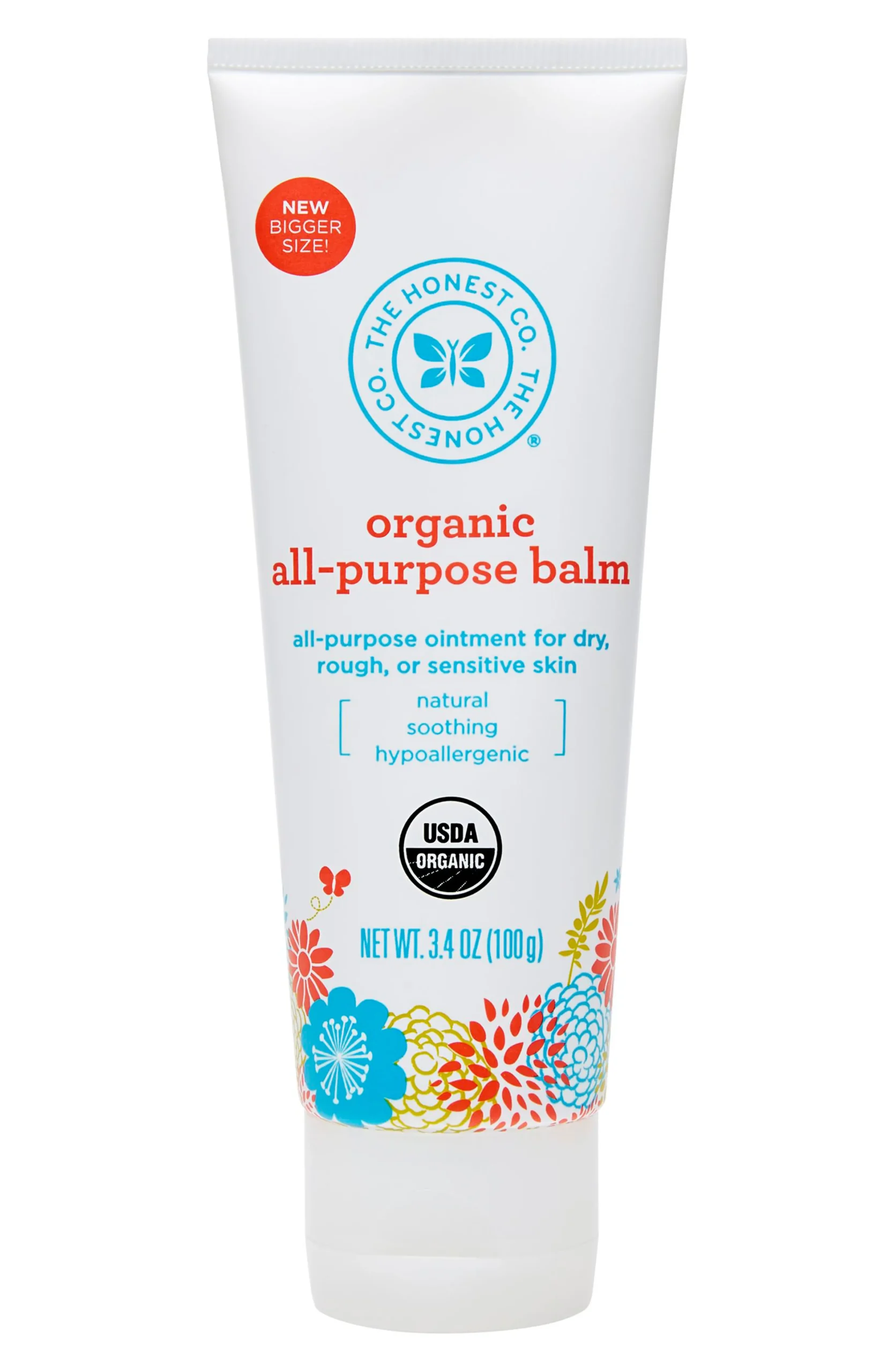 The Honest Co. All-Purpose Organic Balm-Â Is a gentle multi-use salve made with certified organic ingredients like sunflower seed oil, olive oil, coconut oil and shea butter .It helps soothe and moisturize dry, sensitive skin, chapped lips, rough patches and minor irritations.